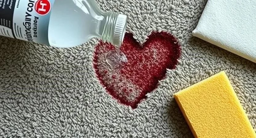 Перекись водорода – это эффективное средство для удаления пятен крови и других органических загрязнений. Но будьте осторожны, так как перекись водорода может обесцветить ковер, поэтому сначала протестируйте ее на незаметном участке.