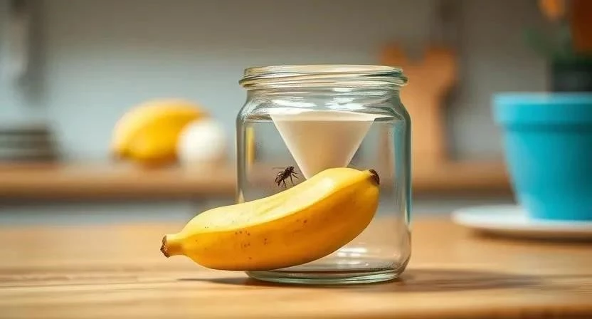- Ловушка с фруктами: поместите перезрелые фрукты в банку и накройте пленкой с отверстиями.