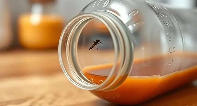 - Ловушка с приманкой: Смешайте мед, воду и немного уксуса. Налейте смесь в емкость и добавьте несколько капель моющего средства.