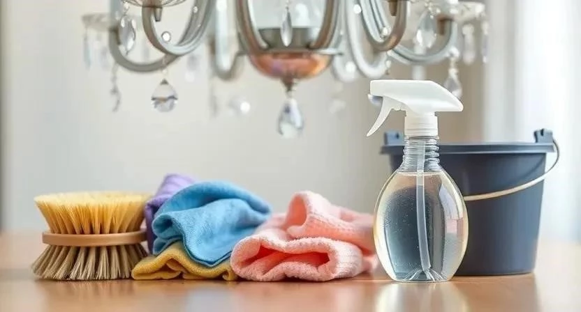 Какие средства можно использовать для чистки люстры? Можно использовать мыльный раствор, специальные средства для чистки люстр или дистиллированную воду.