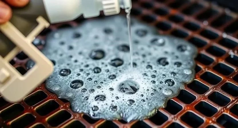 - Уксус: Замочите решетку в уксусе на несколько часов, а затем очистите щеткой.