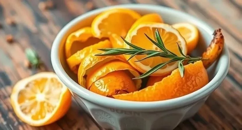 Цитрусовые корки – отличный натуральный освежитель воздуха. Просто положите их на батарею или в миску с водой и поставьте в комнате. Эфирные масла, содержащиеся в цитрусовых, обладают антибактериальными свойствами и создают бодрящий аромат. Я часто делаю спрей из цитрусовых корок, заливая их кипятком и добавляя немного эфирного масла лимона. Получается отличный освежитель для кухни.