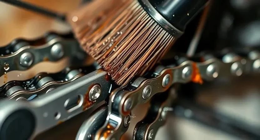 5. Тщательно прочистите цепь сухой щеткой, чтобы удалить поверхностную грязь.
