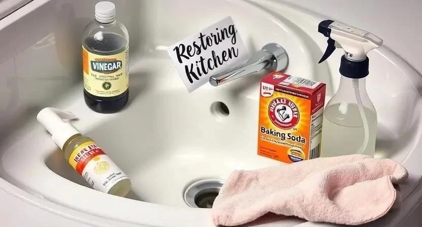 Уксус – универсальное средство для уборки. Разведите уксус с водой в пропорции 1:1 и протрите поверхности. Уксус эффективно удаляет жир, налет и неприятные запахи. Я часто использую уксус для очистки раковины и столешницы.