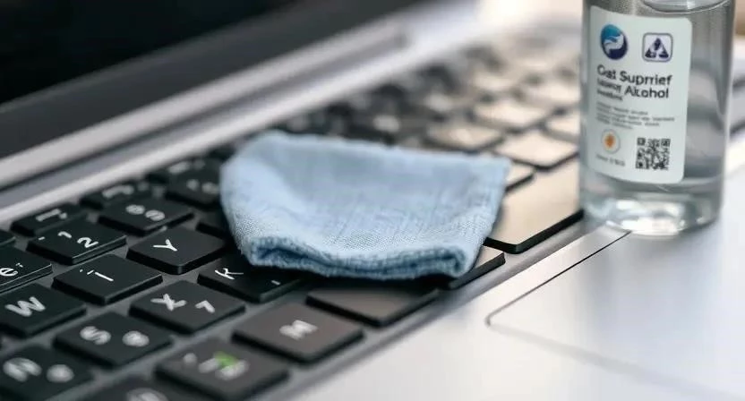 Ответ: Используйте изопропиловый спирт (70% или выше) для дезинфекции поверхности клавиш.