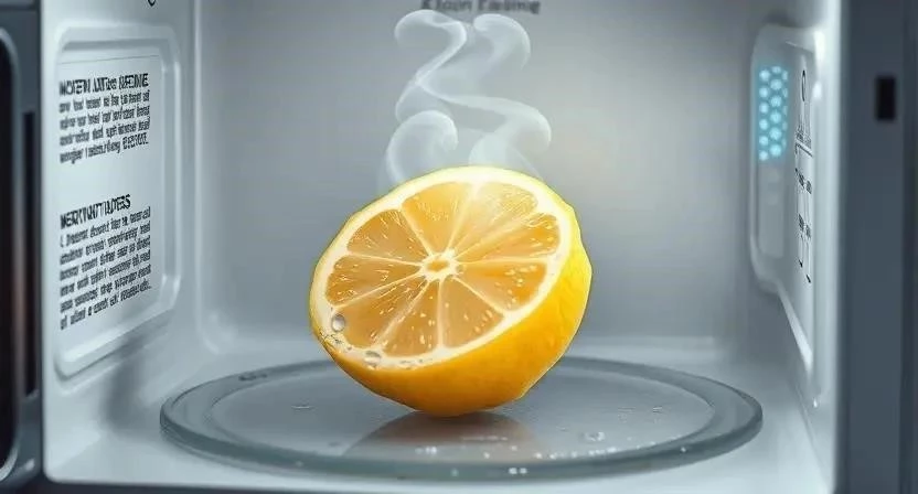 Лимон – это натуральное чистящее средство, которое отлично справляется с жиром и неприятными запахами. Выжмите сок одного лимона в стакан с водой и поставьте в микроволновку на 5-7 минут на максимальную мощность. После этого протрите внутренние стенки влажной тряпкой. Я помню, как однажды забыл вынуть тарелку с остатками пиццы из микроволновки на несколько дней. Запах был ужасный! Лимонный сок спас ситуацию.