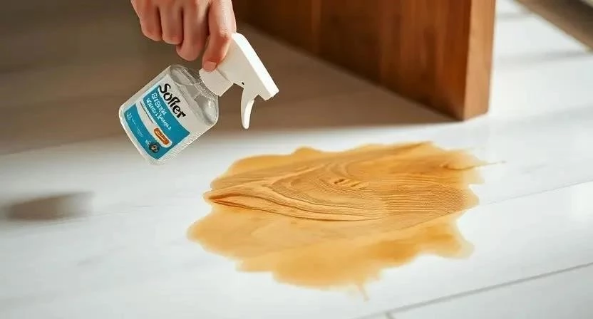 Ответ: Попробуйте использовать специализированный пятновыводитель для виниловых полов или раствор уксуса.
