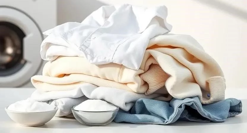- Стирка с уксусом или содой: Добавьте в стиральную машину полстакана уксуса или соды вместе с моющим средством.