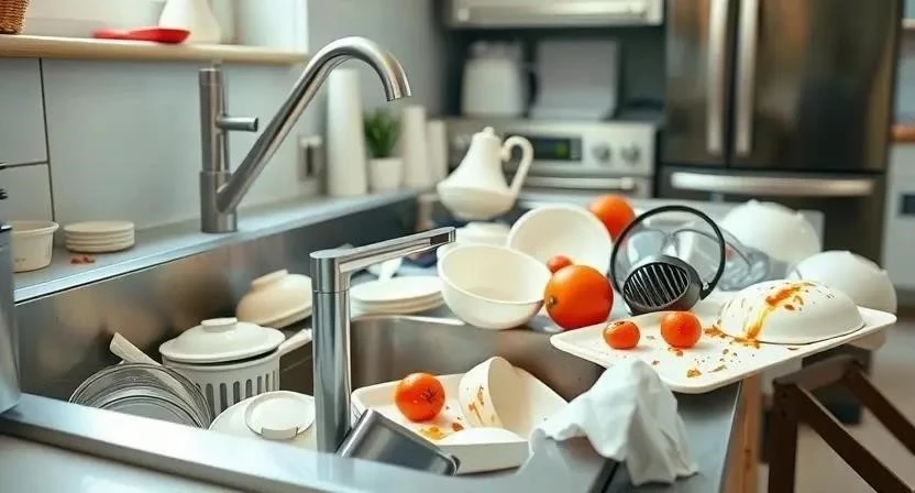 Я всегда стараюсь мыть посуду сразу после еды, чтобы она не успела засохнуть и прилипнуть к тарелкам. Для мытья жирной посуды я использую горячую воду и моющее средство для посуды. После мытья посуды я обязательно протираю раковину и столешницу.